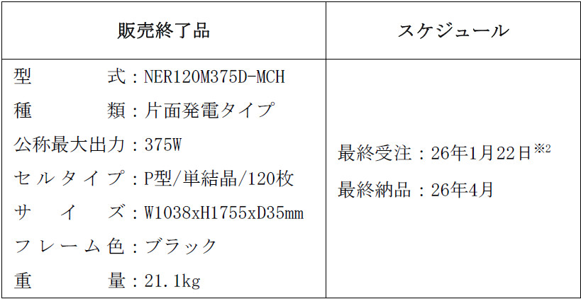 【ネクストエナジー】太陽電池モジュールの販売終了品(375W)と今後の商品(455W)に関するお知らせ